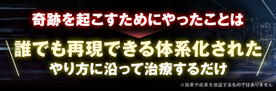 今お伝えしたような奇跡や空想のような治療結果を出すために何をしたのか?「数十年やっている凄腕のベテランしかできないような難しい治療をしているのではないか?」と思われるかもしれませんが、決してそんなことはありません。