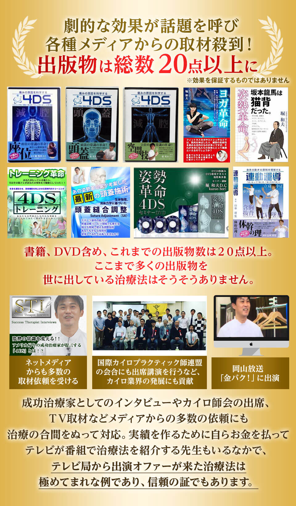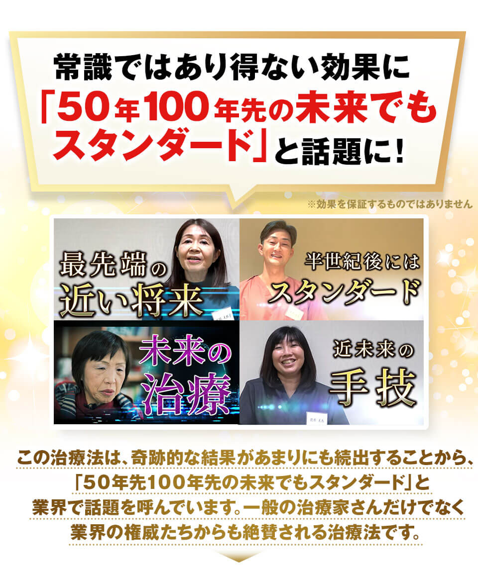 やったことは誰でもできる体系化されたやり方に沿って治療しただけです。業界にはセンスや感覚がないとできない治療もありますが、この治療法は見よう見まねでやるだけで、「奇跡」のような結果が出せる。そんな方法をアメリカ政府公認のカイロドクターが科学的な知見に基づき体系化に成功しました。